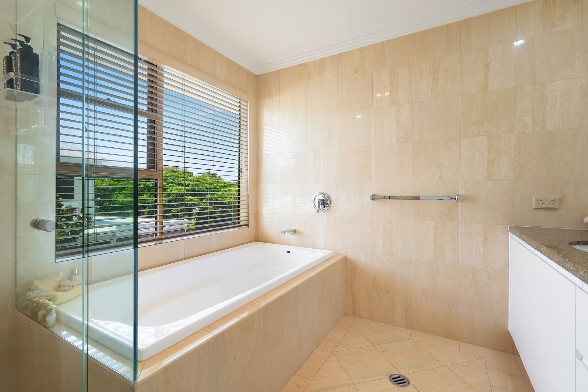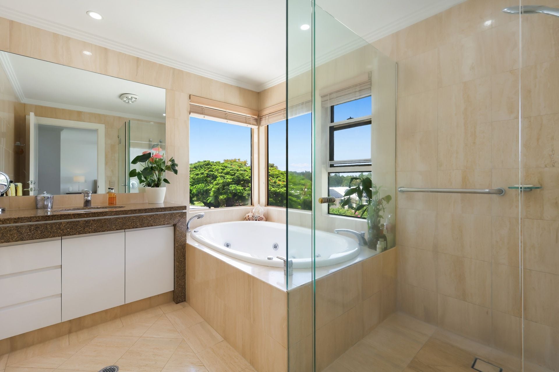 On the second floor, there are three generously sized bedrooms. The master suite is a true sanctuary, boasting a luxurious ensuite bathroom with a spa, a private sun-drenched balcony overlooking the golf course and hinterland and an oversized walk-in robe. The two additional bedrooms are conveniently serviced by a well-appointed bathroom and separate powder room, with all bathrooms showcasing elegant Travertine tiles.