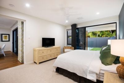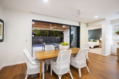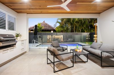 Beyond the indoor space lies the private alfresco entertaining with built in BBQ kitchen, and all weather shutters with clear visibility over the luxurious and fully fenced heated pool, complete with shade umbrella, pool blanket and sun bathing terrace. This tranquil oasis provides the perfect setting for relaxation and entertaining, offering a resort-like atmosphere where you can enjoy the quintessential Gold Coast lifestyle.