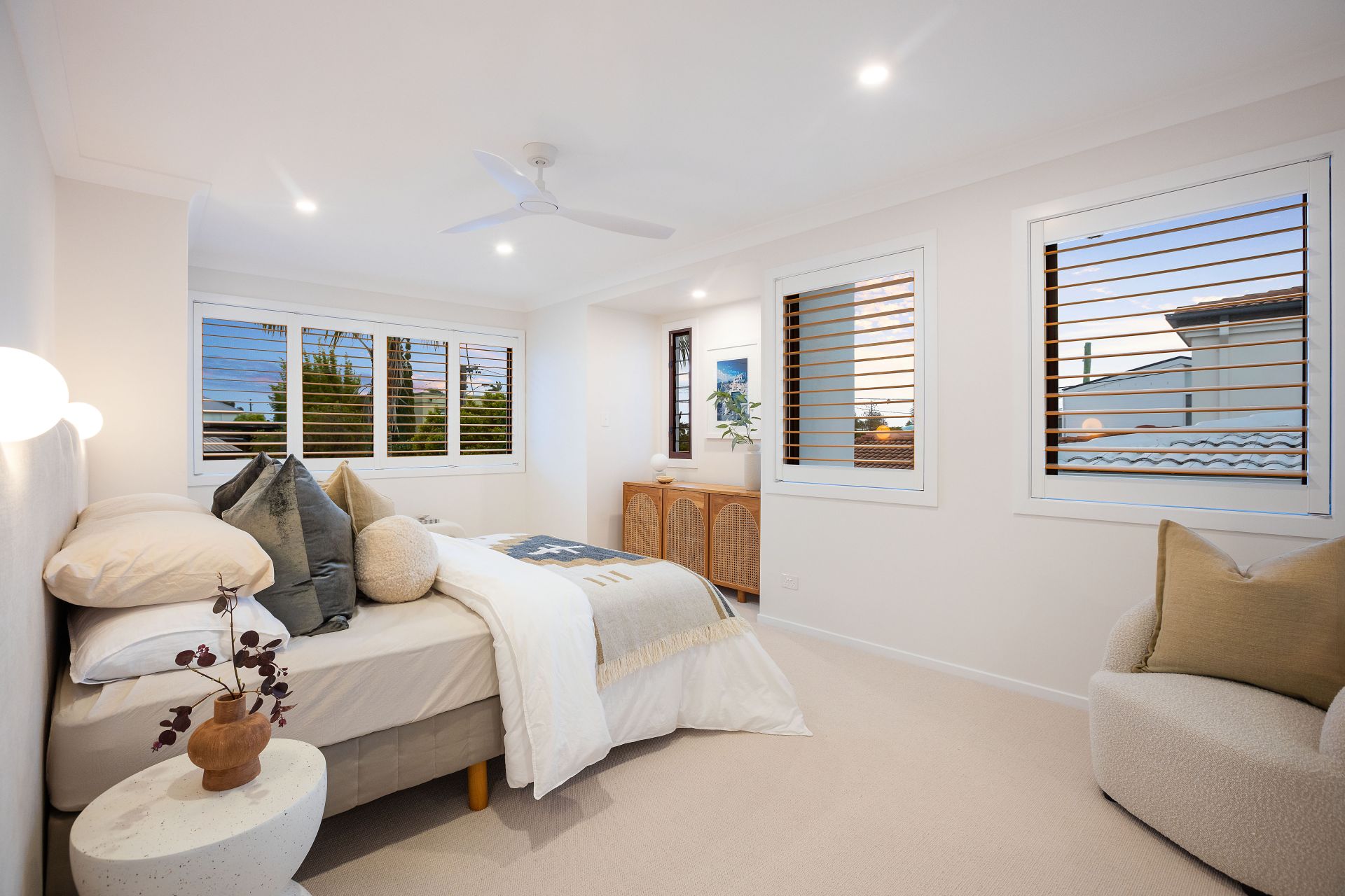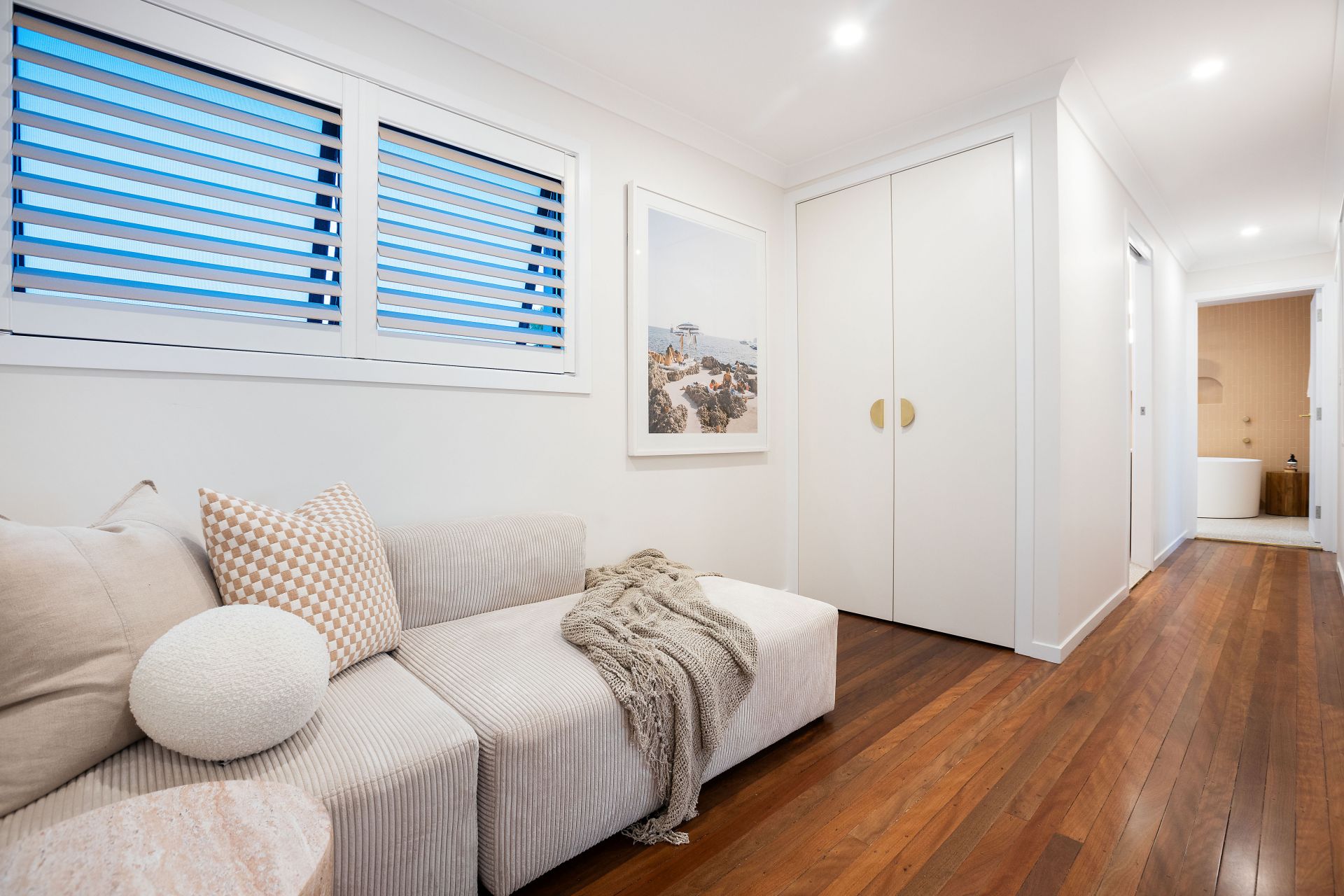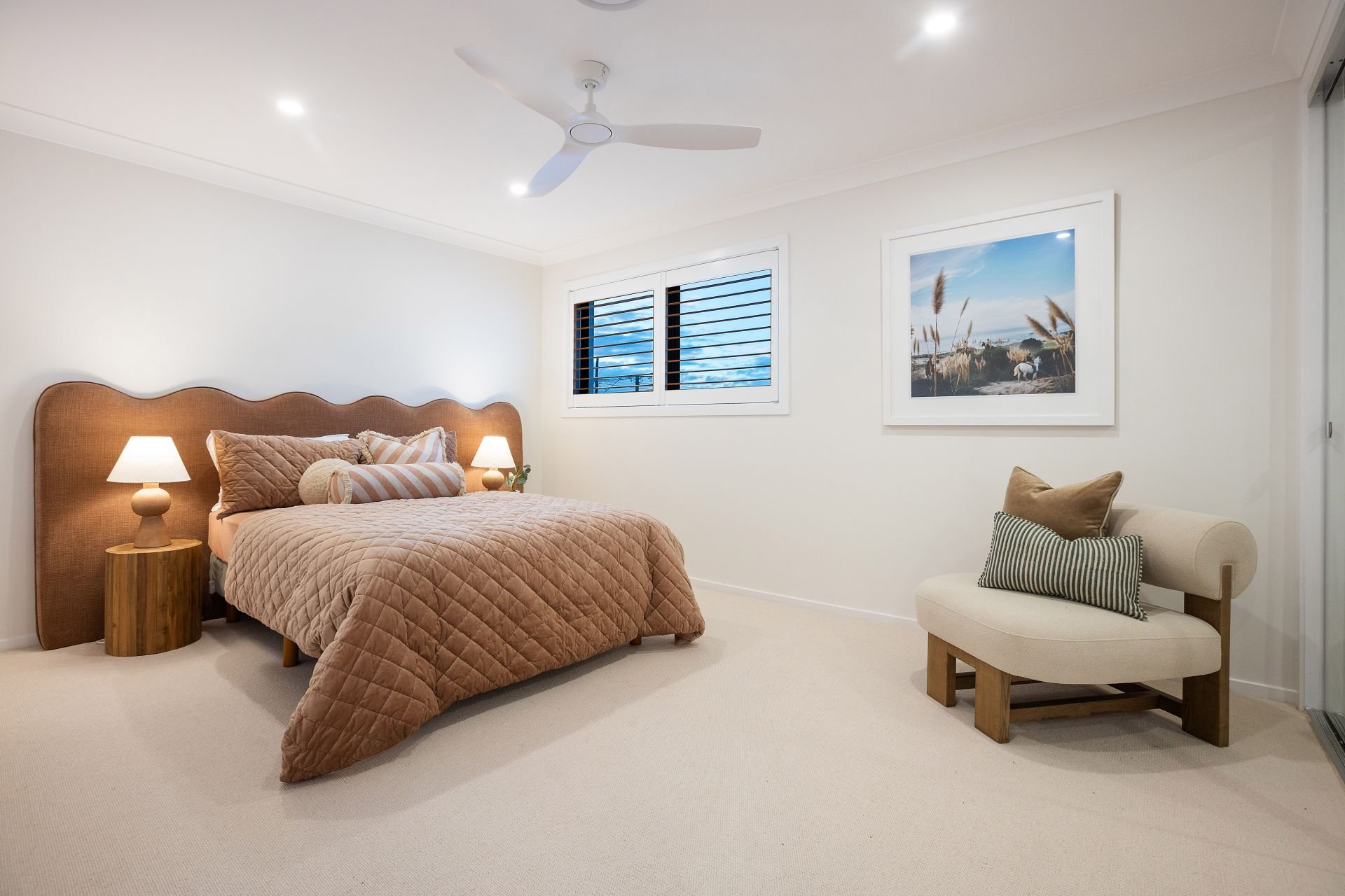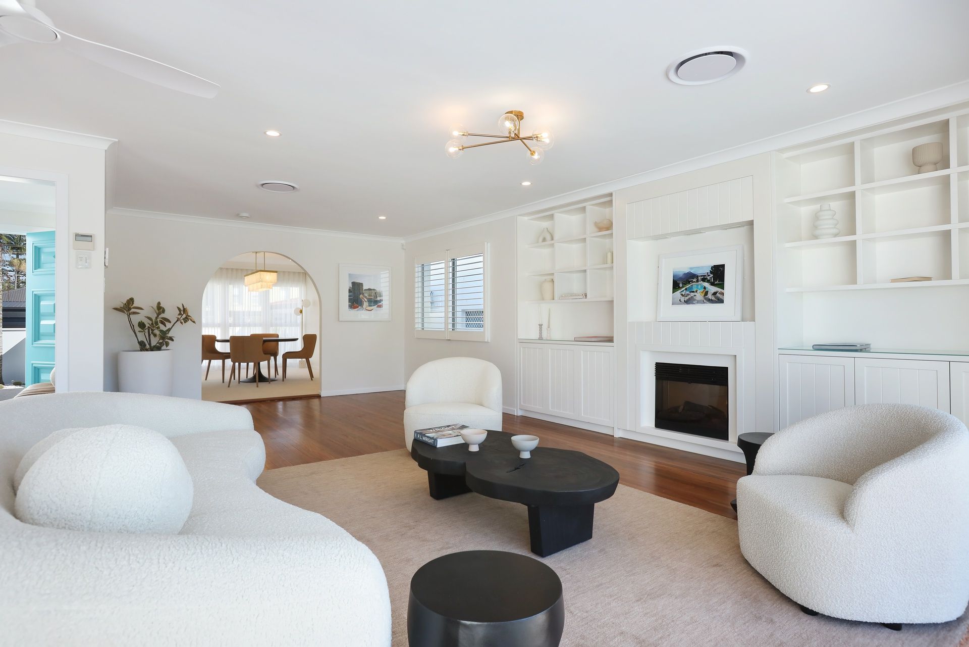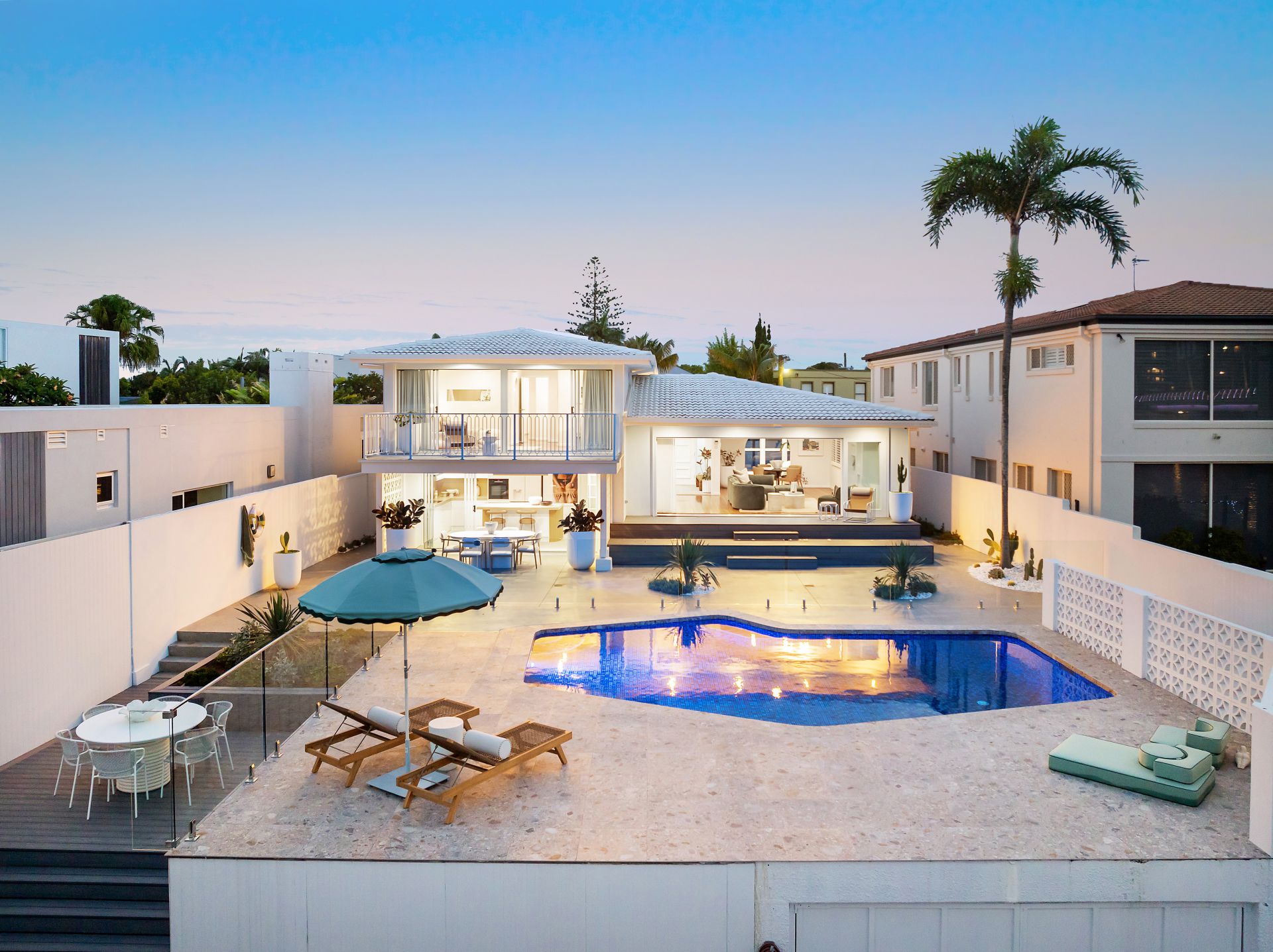 Beyond the interior, the property is designed for relaxation and leisure. An inviting pool, surrounded by low-maintenance Palm Springs inspired gardens perfectly complement the home's lifestyle appeal. A copper hot-and-cold outdoor shower adds convenience and completes the resort-like atmosphere. The property also offers a secure four car garage with additional off-street parking and integrated CCTV for peace of mind whilst ducted air-conditioning and automated curtains ensures comfort throughout every season.