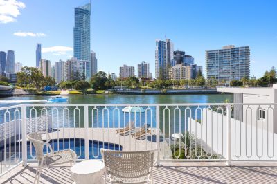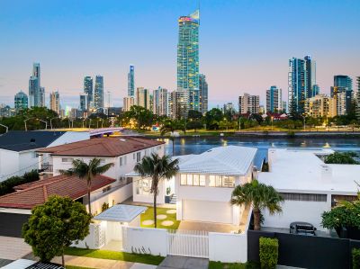 Discover a harmony of style and sophistication in this Palm Springs inspired residence. Situated on a premier 685sqm* North East to main river parcel, this chic residence offers a serene oasis in the heart of Isle of Capri. Boasting spectacular city skyline views and just a short walk from the vibrant Capri on Via Roma precinct, it perfectly blends modern luxury with inner city coastal charm.