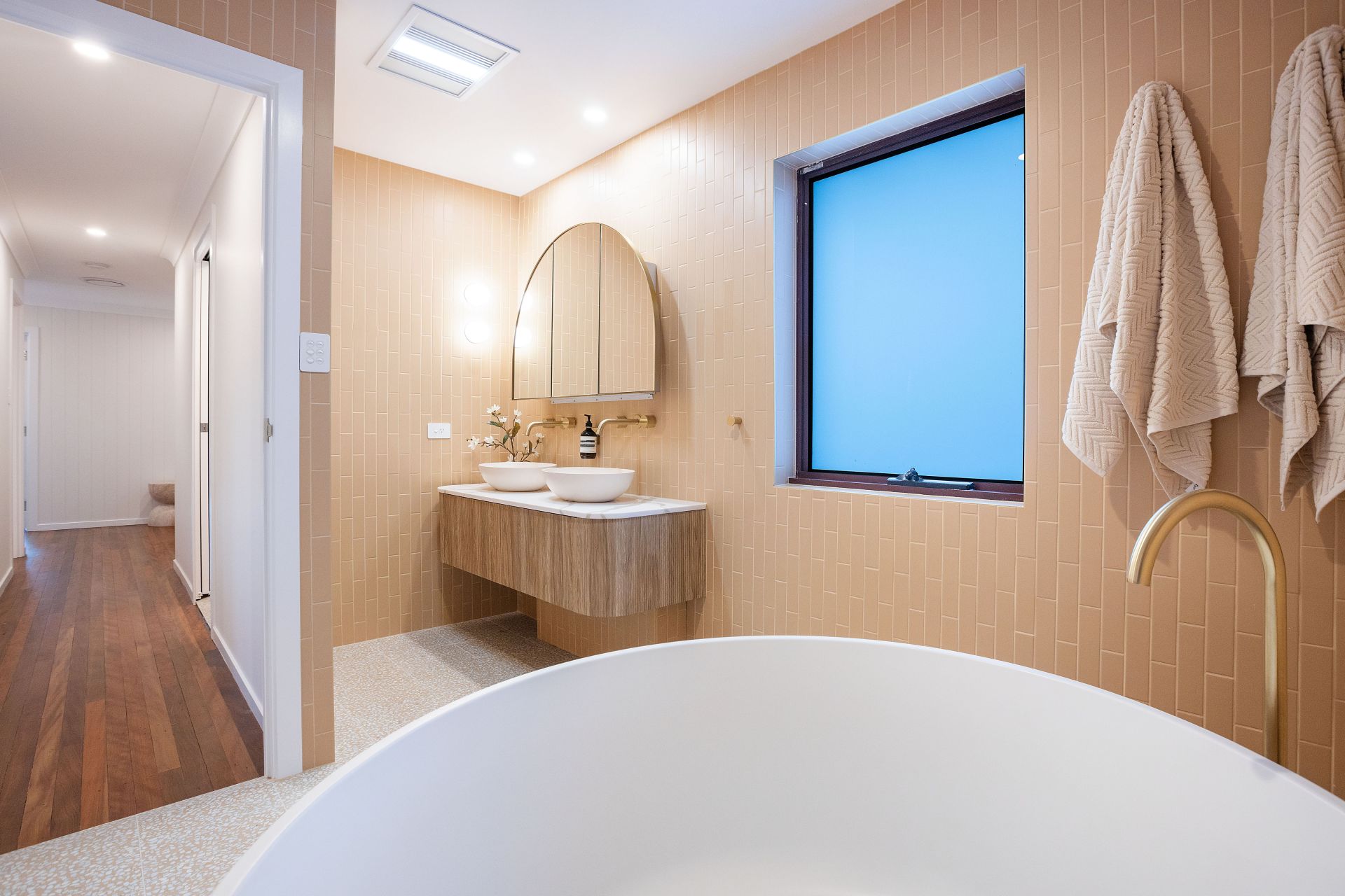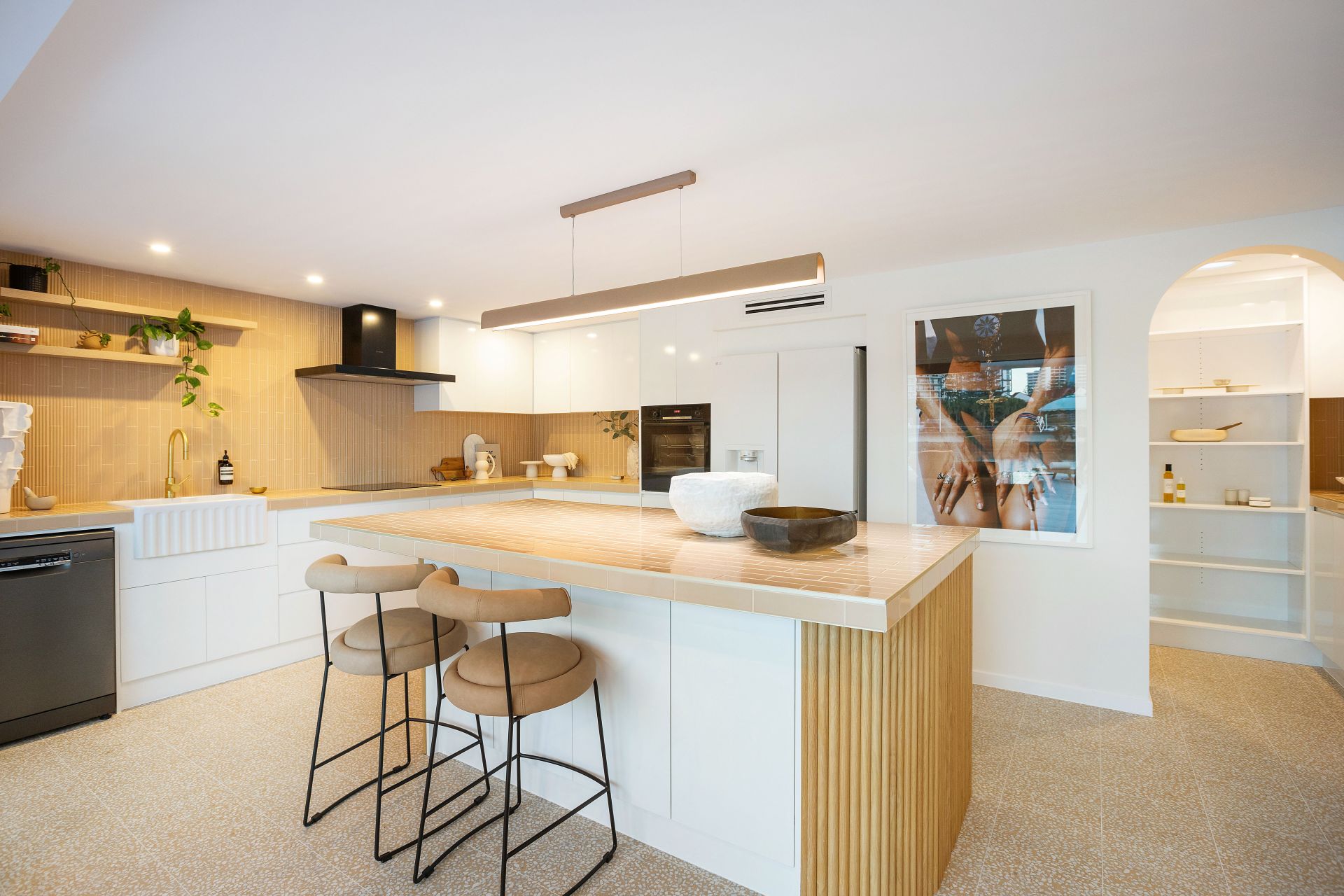 This riverfront haven effortlessly blends modern design with functionality, featuring an expansive entertainers kitchen, open plan living on beautiful timber floors, and a versatile 2nd living, perfect as a whiskey room, home office or 4th bedroom. The well appointed gourmet kitchen offers a perfect setting for both cooking and entertaining, and features a custom island bench, high-end Bosch appliances, and a walk in pantry.