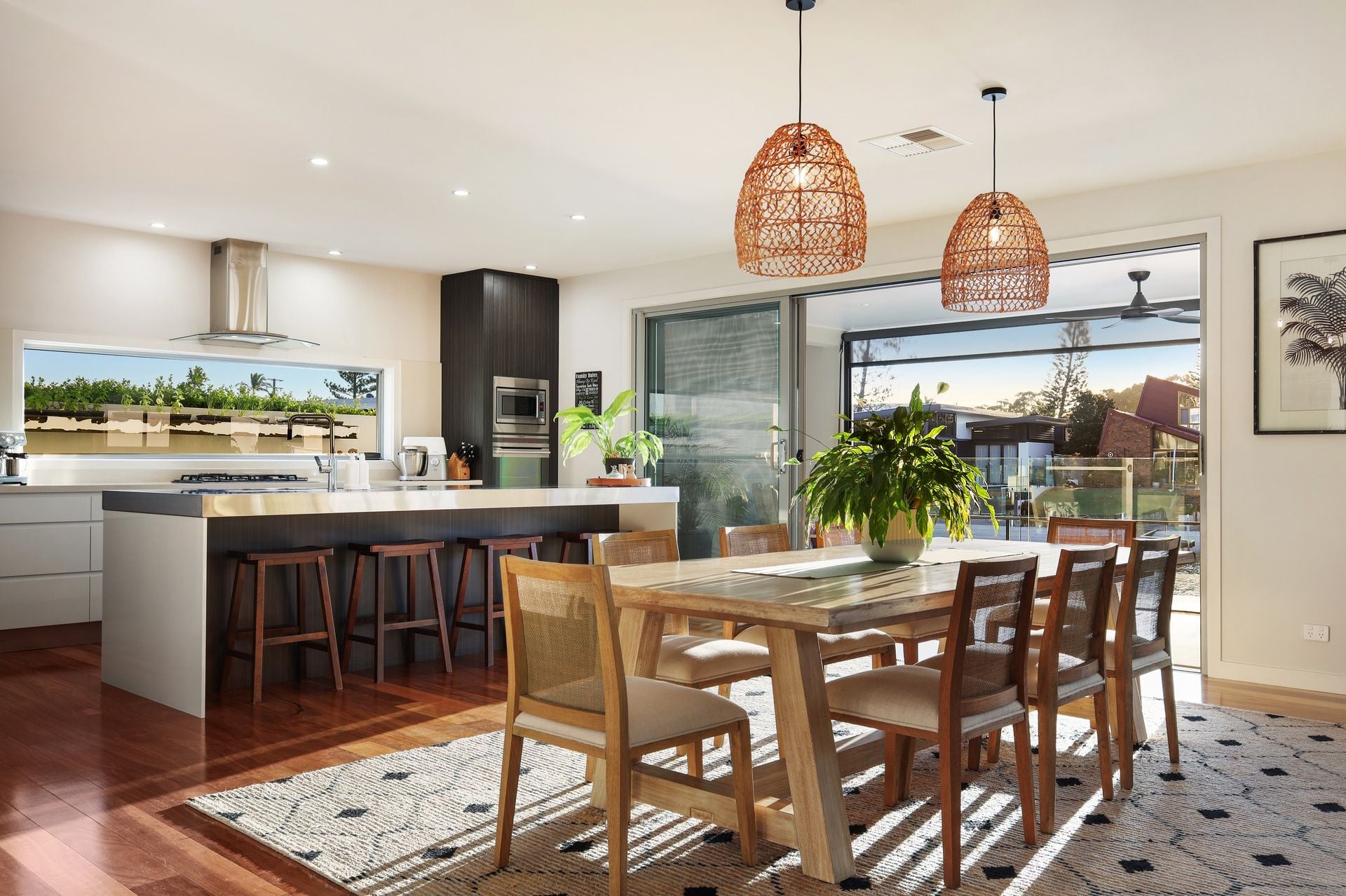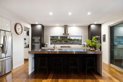 At the heart of the home, a stunning and highly functional kitchen showcases premium appliances, an expansive island bench and an oversized butler's pantry, perfectly positioned to connect indoor living with the outdoors.