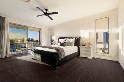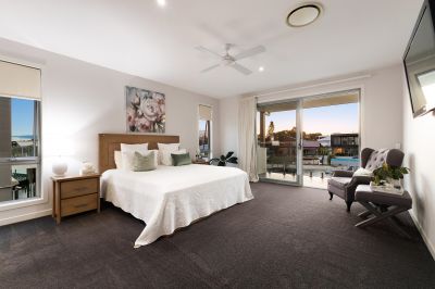 The accommodation is equally impressive, comprising six king sized bedrooms thoughtfully designed for exceptional space and comfort. Upstairs, four bedrooms include a choice of two luxurious master suites, each enjoying tranquil water views, private balconies, spacious walk-in robes and elegant ensuites, creating refined private retreats for rest and relaxation. Two versatile bedrooms on the ground floor offer excellent separation, privacy and ease of access, ideal for guests or extended family, ensuring every family member is superbly catered for.