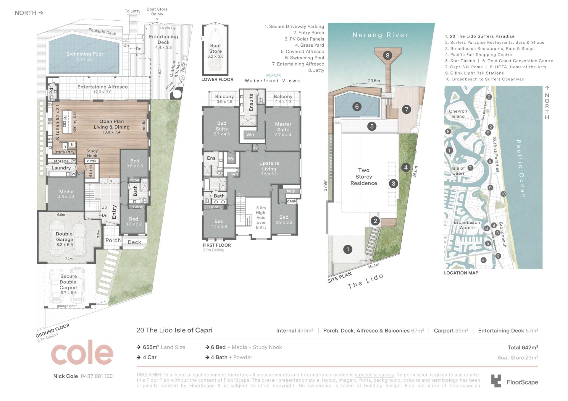 Additional extras include high ceilings throughout, study nook, poolside powder room, ducted and zoned conditioning, abundant natural light, security screens, copious storage, laundry chute, oversize 2 car garage and double carport, boatshed, lawn for children and pets to enjoy in safe surrounds, solar tiles and inverter, video intercom and more.