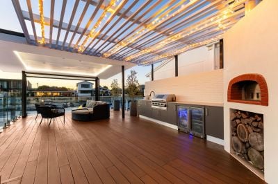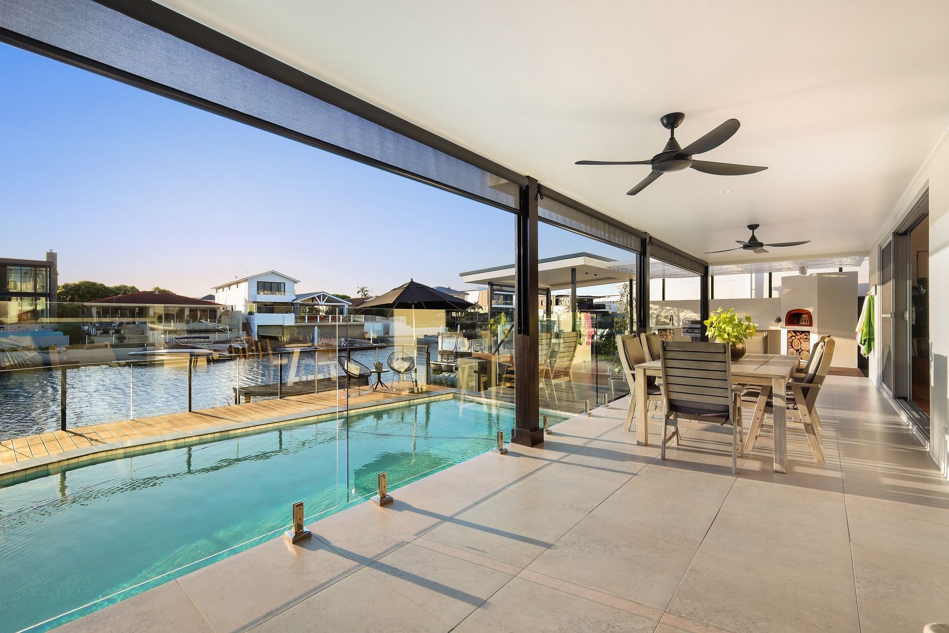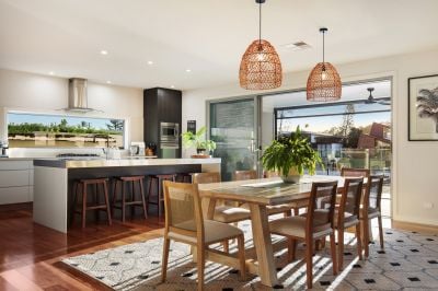 Outdoors, an enviable alfresco haven awaits complete with bbq kitchen, pizza oven and all weather / privacy screens. Set overlooking the waterway and framed by expansive timber decks, a sparkling swimming pool, sandy beach and large private jetty. Screened for privacy and conditions by all weather blinds, this exceptional setting is ideal for entertaining or simply unwinding while enjoying the waterfront lifestyle.