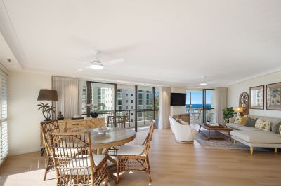 Discover the rare chance to own a stunning residence in the highly coveted Spinnaker Apartments, ideally positioned directly across from picturesque patrolled surf beaches. This beautifully renovated apartment boasts breathtaking ocean views and a design that seamlessly blends beach living with coastal elegance. The thoughtfully crafted layout enhances the spacious feel, making this apartment much larger than it appears.