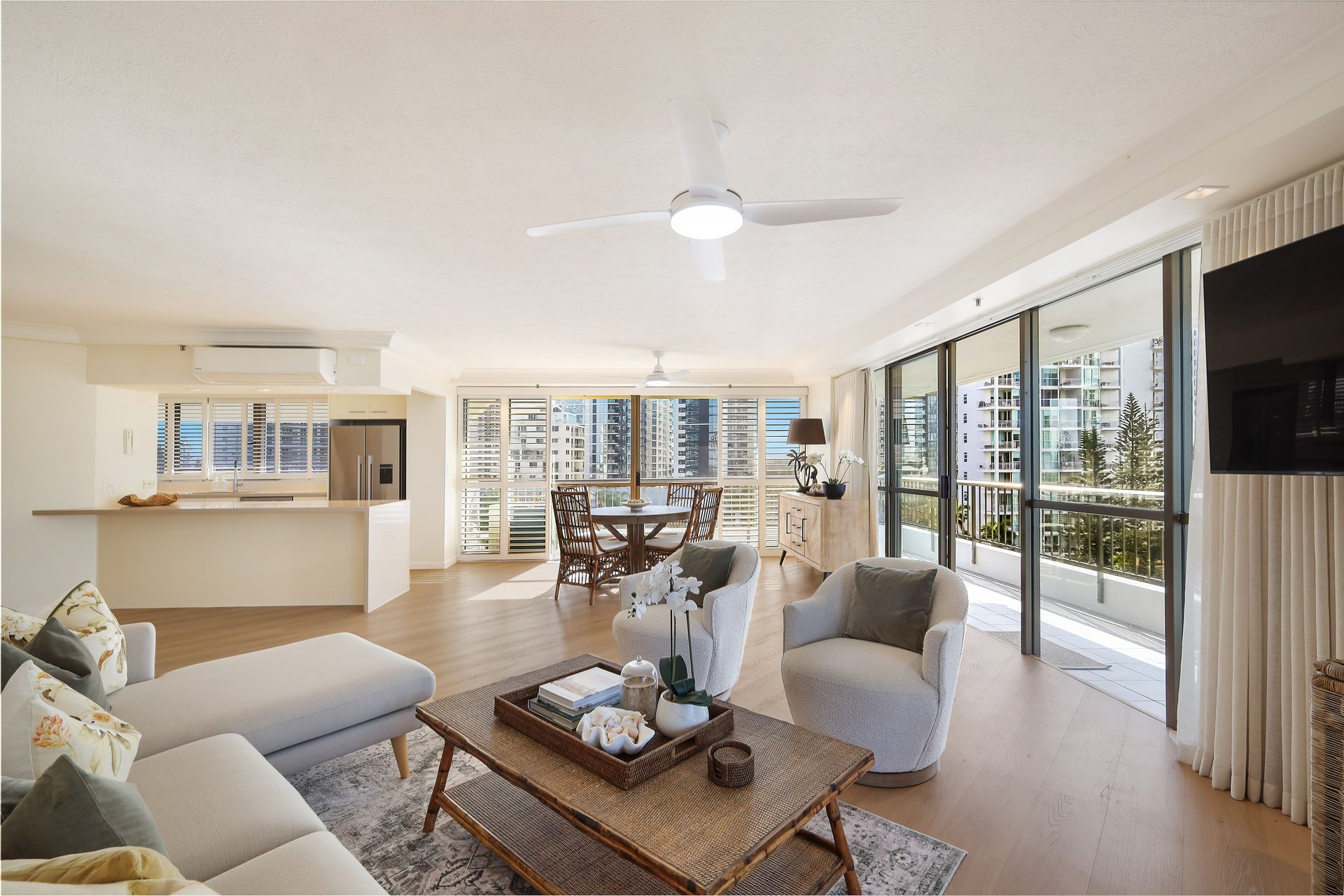 ⁃ Open Plan Living, Dining and Kitchen with Ocean Views
