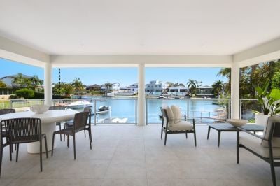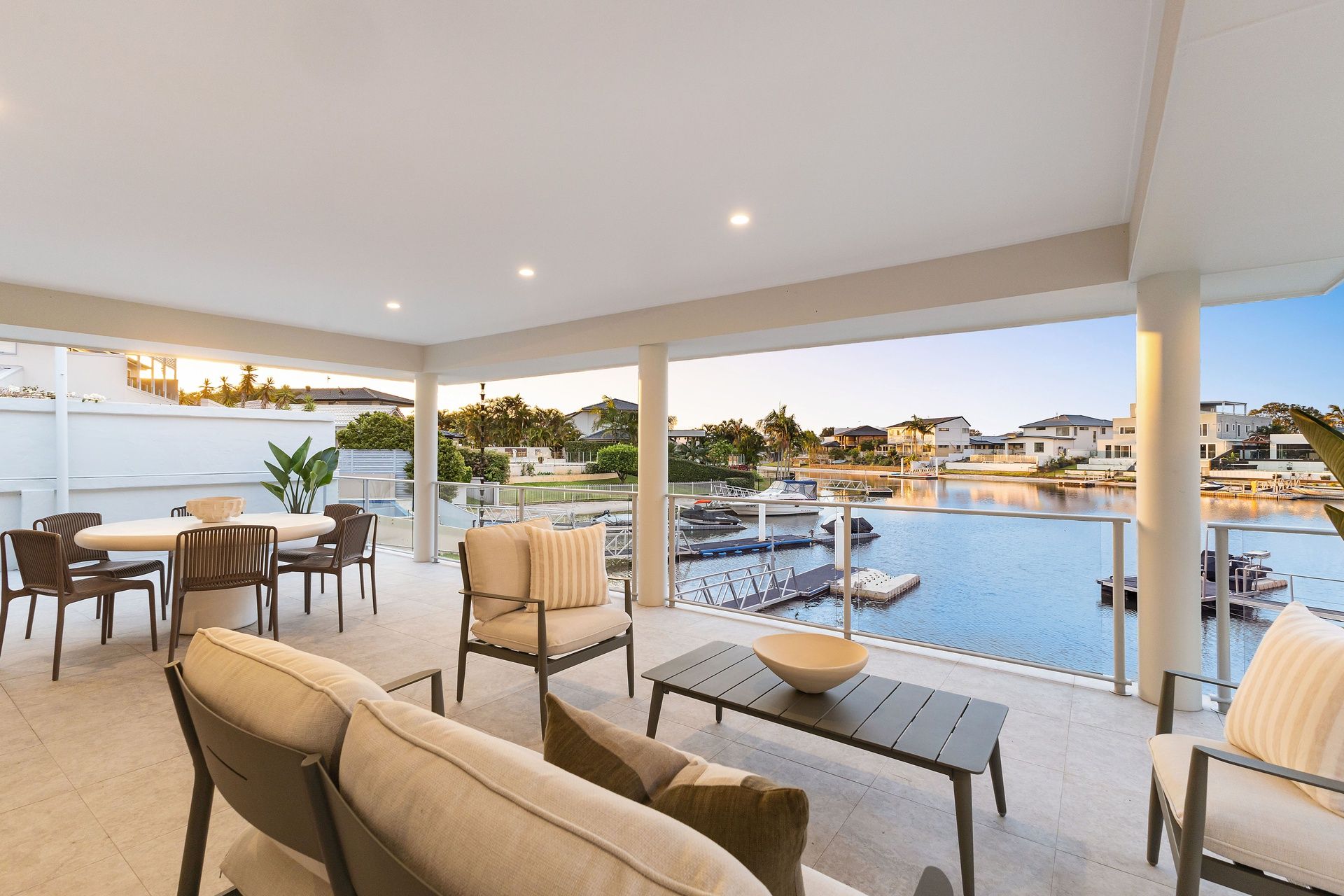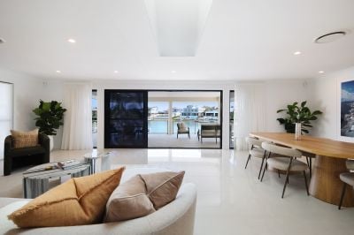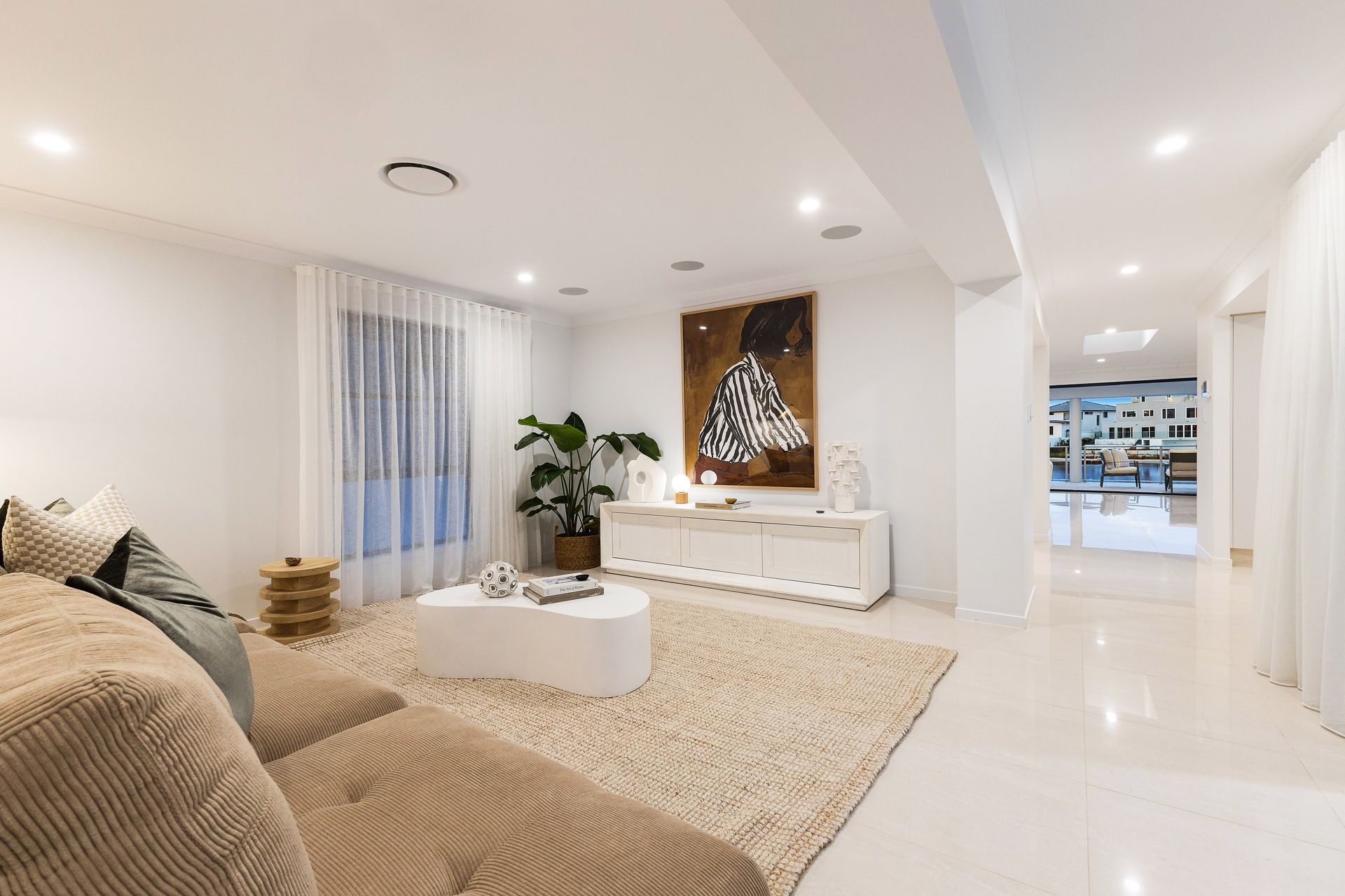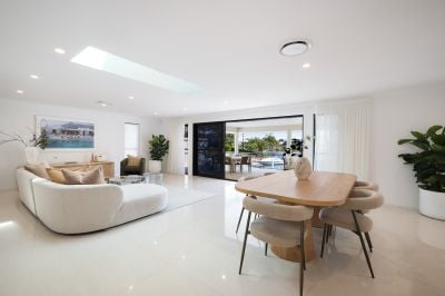 Designed for refined living and effortless entertaining, the expansive open-plan living and dining areas extend seamlessly to a fully tiled waterfront alfresco terrace. Bask in golden sunsets and refreshing coastal breezes, the ultimate backdrop for gatherings year-round. Alternatively, retreat to the tranquil, central covered entertaining area, offering a private, sheltered and serene setting.