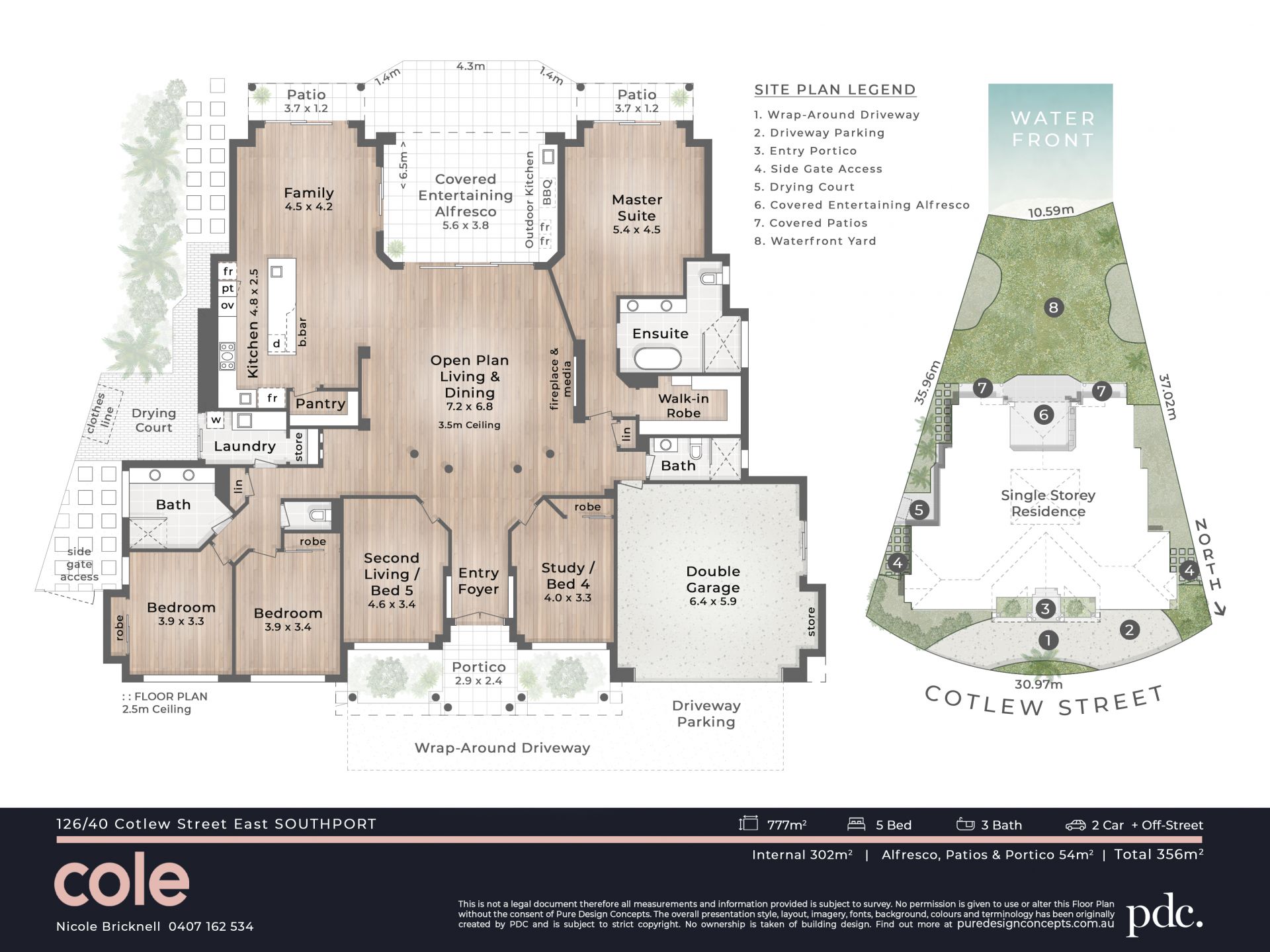 This exquisite single-level home offers an array of versatile living spaces, tailored to your needs. You can choose from five bedrooms or opt for a configuration of four bedrooms plus an office, or even three bedrooms with an office and a second living area, ensuring ample space for work, relaxation, and family time. The master suite is a true sanctuary, boasting serene water views, a luxurious ensuite bathroom with a free-standing bath and walk-in robe, and finished with elegant touches throughout.