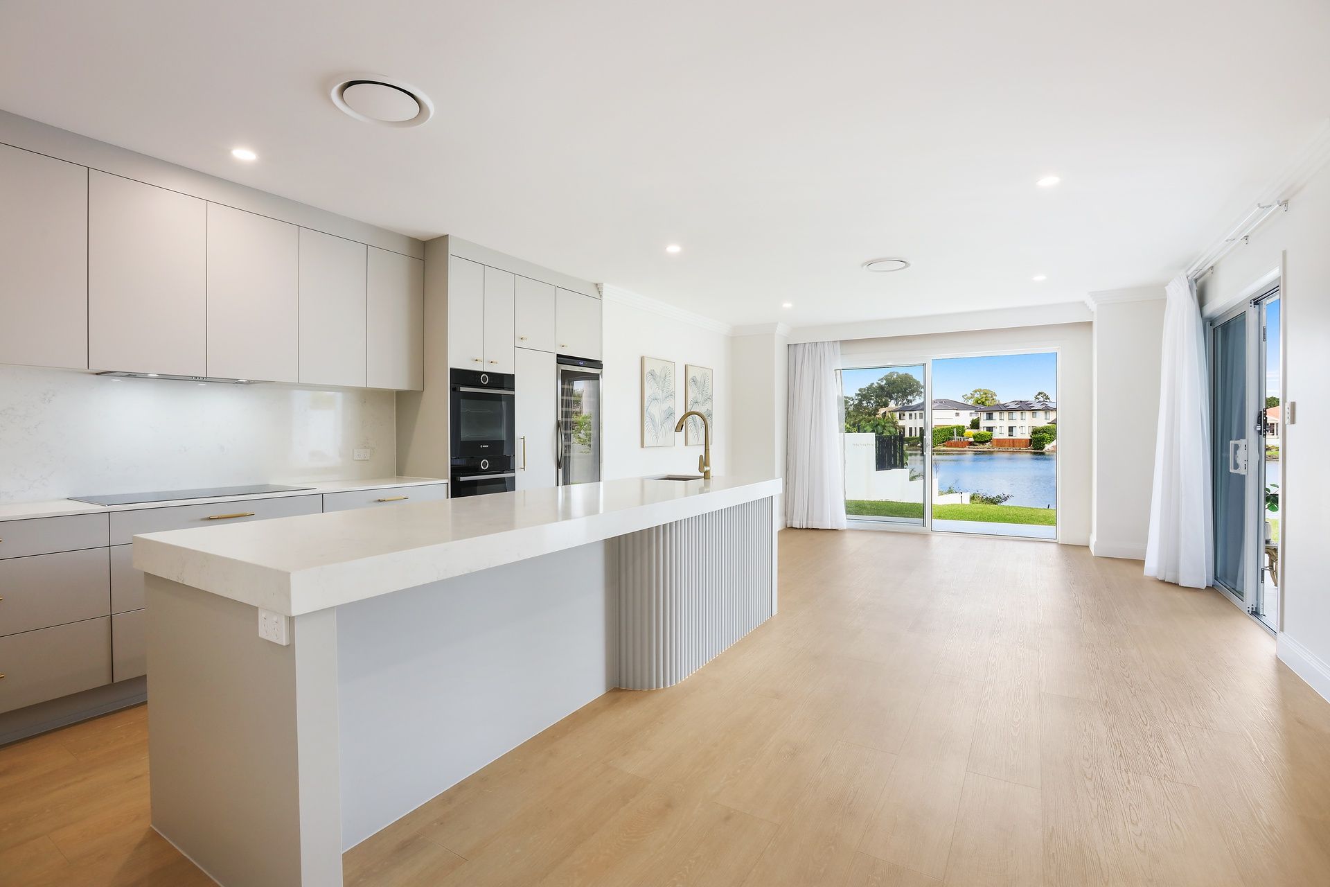 The heart of the home features a gourmet kitchen equipped with Bosch appliances, including a double oven and induction cooktop, complemented by a butler's pantry and a wine fridge, perfect for aspiring chefs and entertaining alike. High ceilings enhance the sophisticated design, enriching the open plan living, dining, and kitchen areas that offer seamless views over tranquil waters.